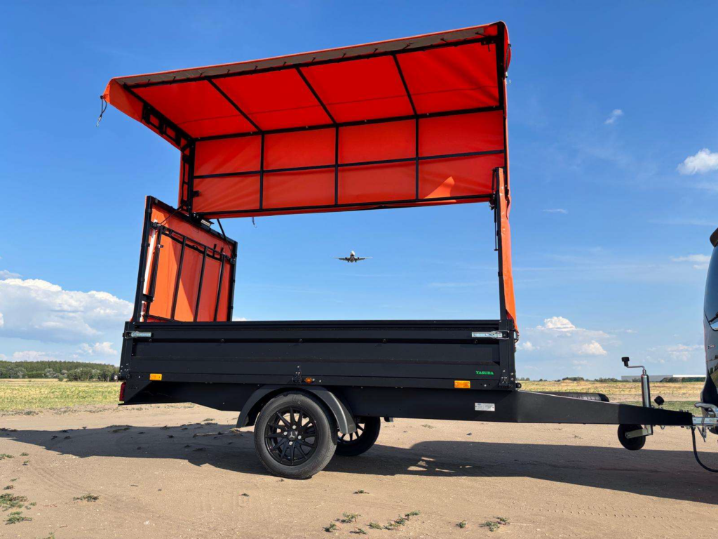 Die auf den beigefügten Bildern sichtbare Wing-Konstruktion wurde auf einen polnischen Lorries-Anhänger aufgebaut und montiert – als erster Prototyp.